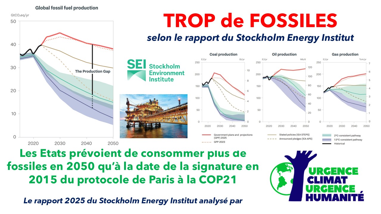 Les 88 pages du rapport, qu'Urgence Climat Urgence Humanité a lus, détaillent comment les Etats, tout en annonçant des trajectoires de moindre émissions de CO2 projettent des consommations surnuméraires de pétrole et de gaz, bien au delà de ce que l'atmosphère terrestre est en capacité de recevoir.